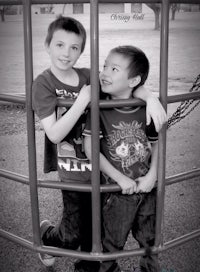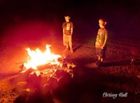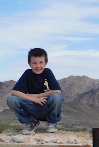 a young man standing next to a body of water